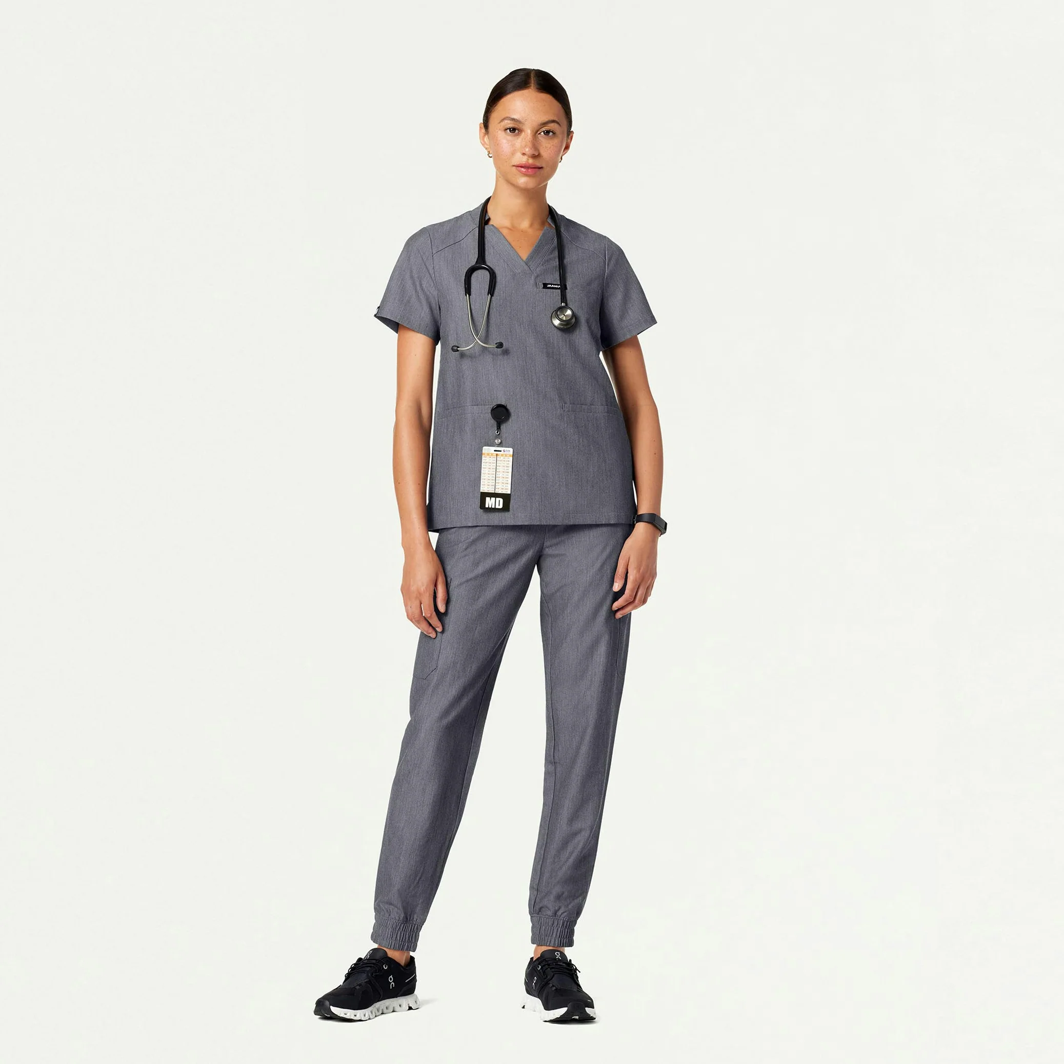 Everyday top with signature notched v-neck. This style pairs best with JAANUU UltraLAST™ scrub pants.