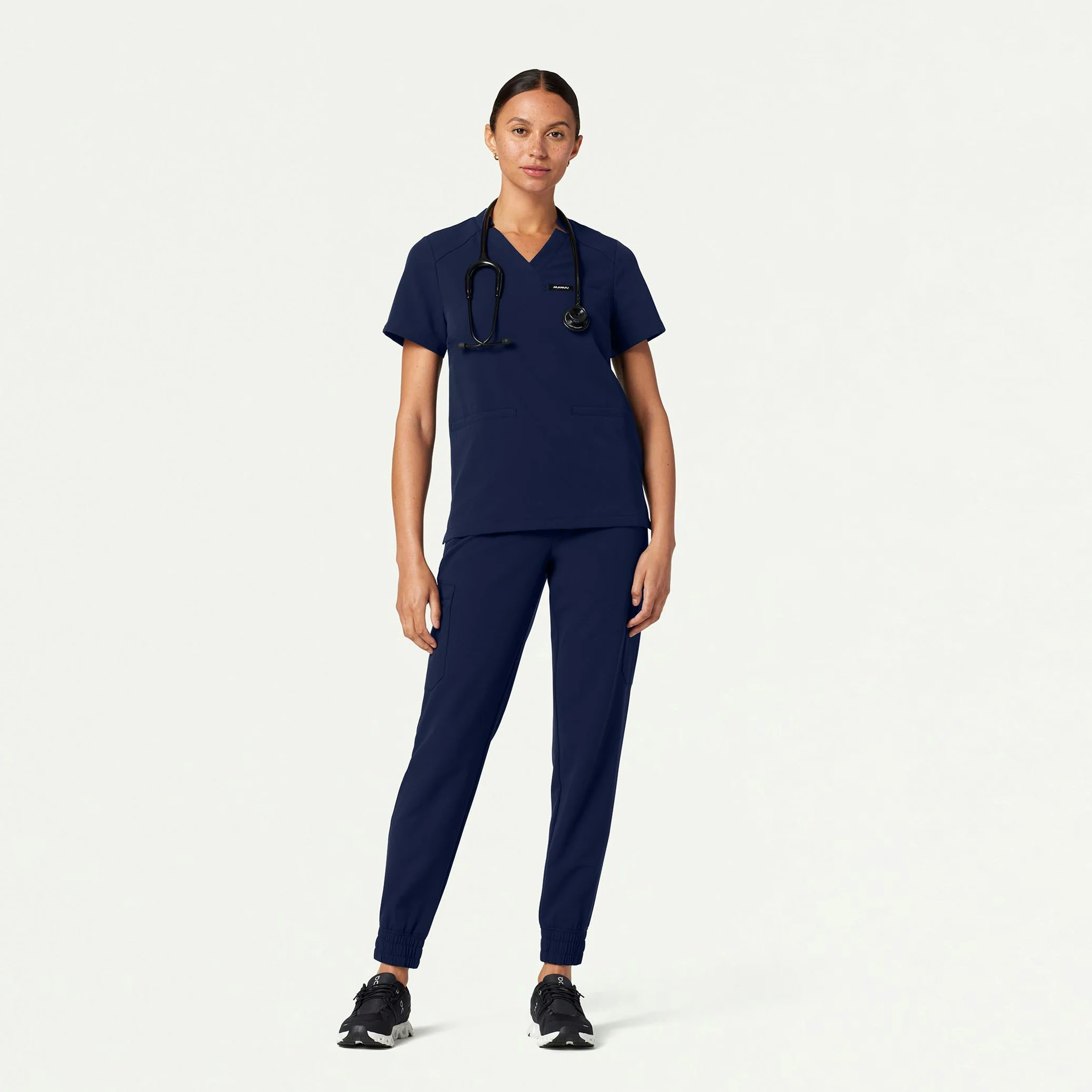 Everyday top with signature notched v-neck. This style pairs best with JAANUU UltraLAST™ scrub pants.