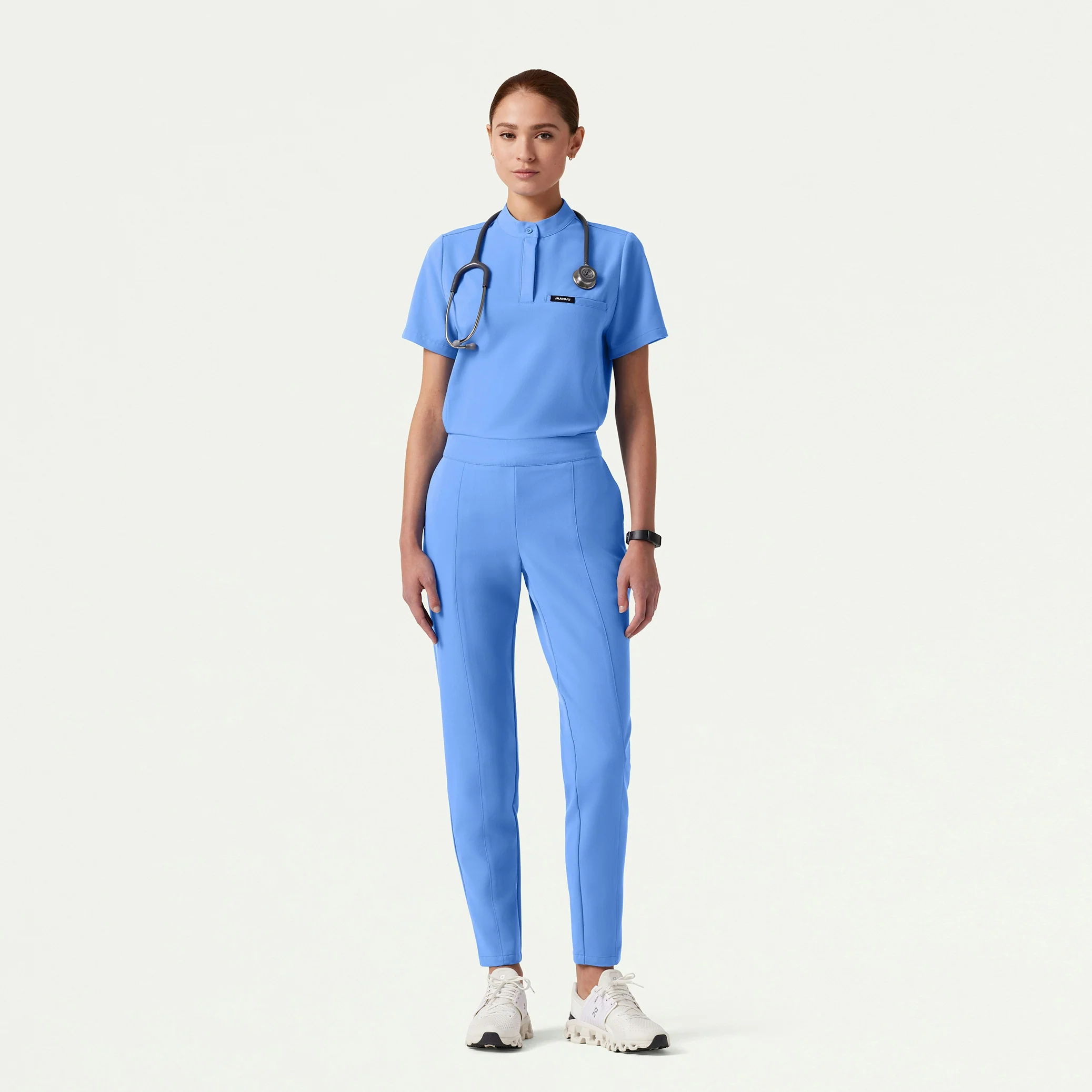 Our most essential fit gets a modern refresh with a banded collar and hidden buttons. This style pairs best with JAANUU UltraLAST™ scrub pants.